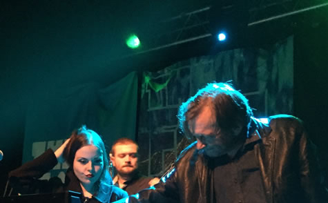 a bowlegged woman and a woe betide gent and a worrisome teen with marker pens, come suddenly through the door. Over the rim of his jar, he decides them, "a very rum number indeed."